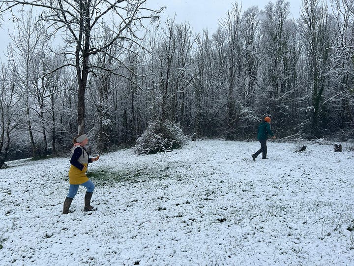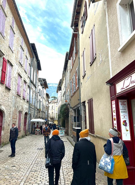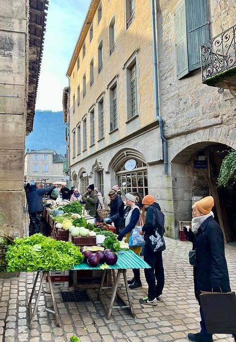 In amongst all this we did find time to walk locally, enjoy a snow day and take in the delights of the Sunday market in St Antonin - a tonic to soothe aching hands!